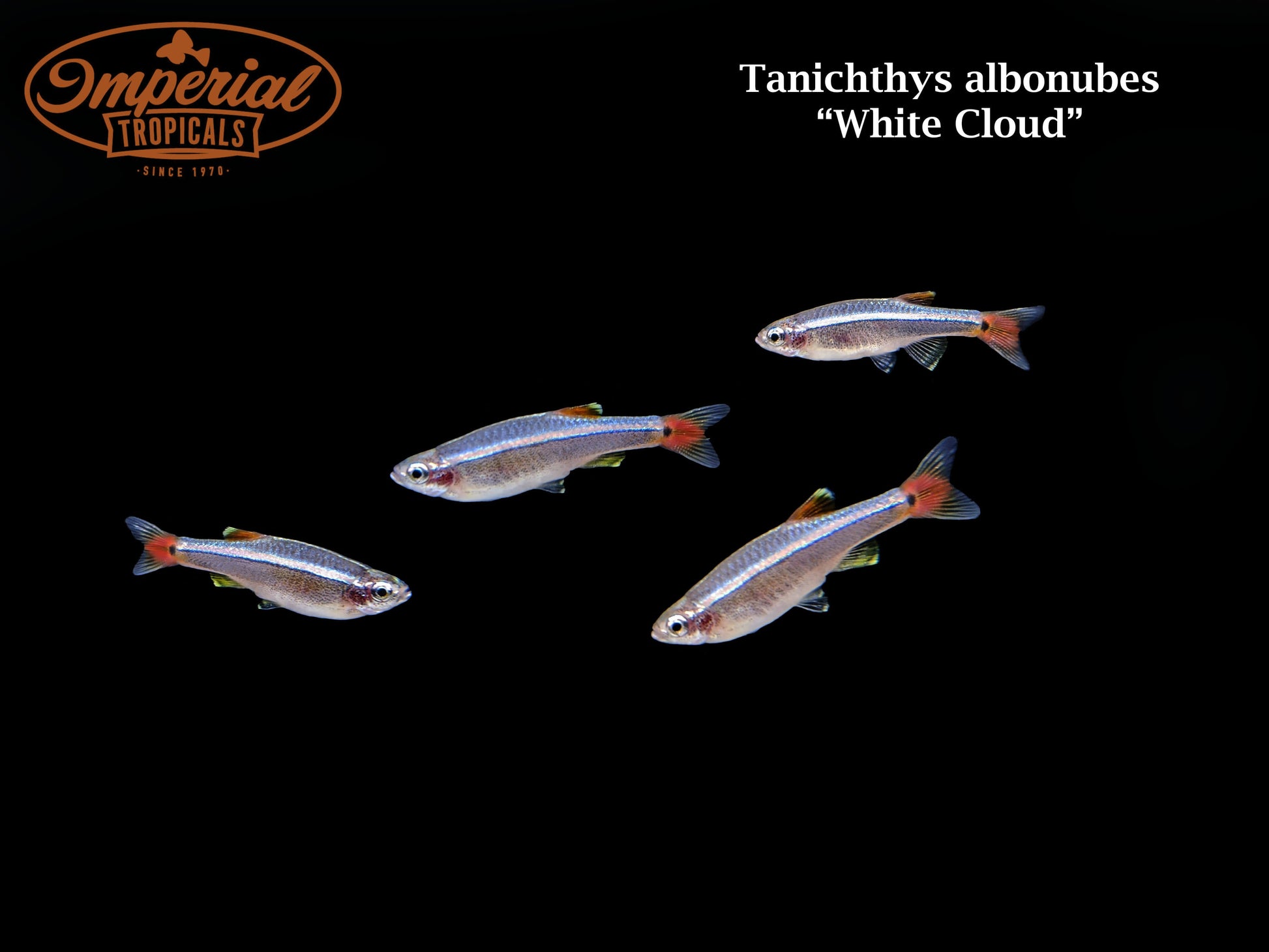 Remarks: White Cloud Mountain Minnows (Tanichthys albonubes) are active cold-water species that can tolerate unheated tanks and reproduces rather easily. They are great for small tanks, breeding projects, and can tolerate ponds in most temperate climates. There are several varieties commonly available in the hobby, including Gold, Long-Fin, and other Tanichthys species such as T. micagemmae or T. kuehnei.