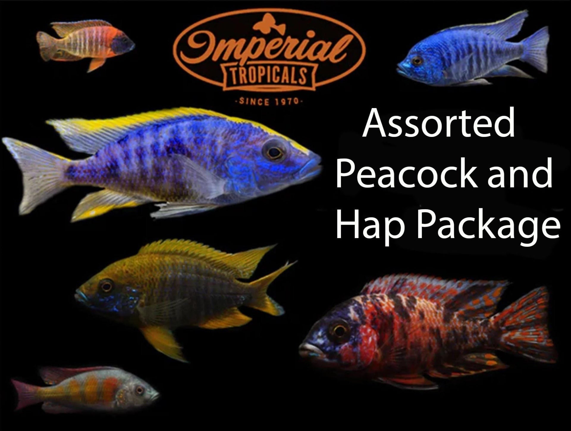 Remarks: You will receive an assortment of 1-2" Unsexed Peacocks and Haps from our inventory. These fish will have NO color at this size! The picture is what the males look like when they reach full color. The unsexed juvenile and female peacocks and haps typically have little to no color.
