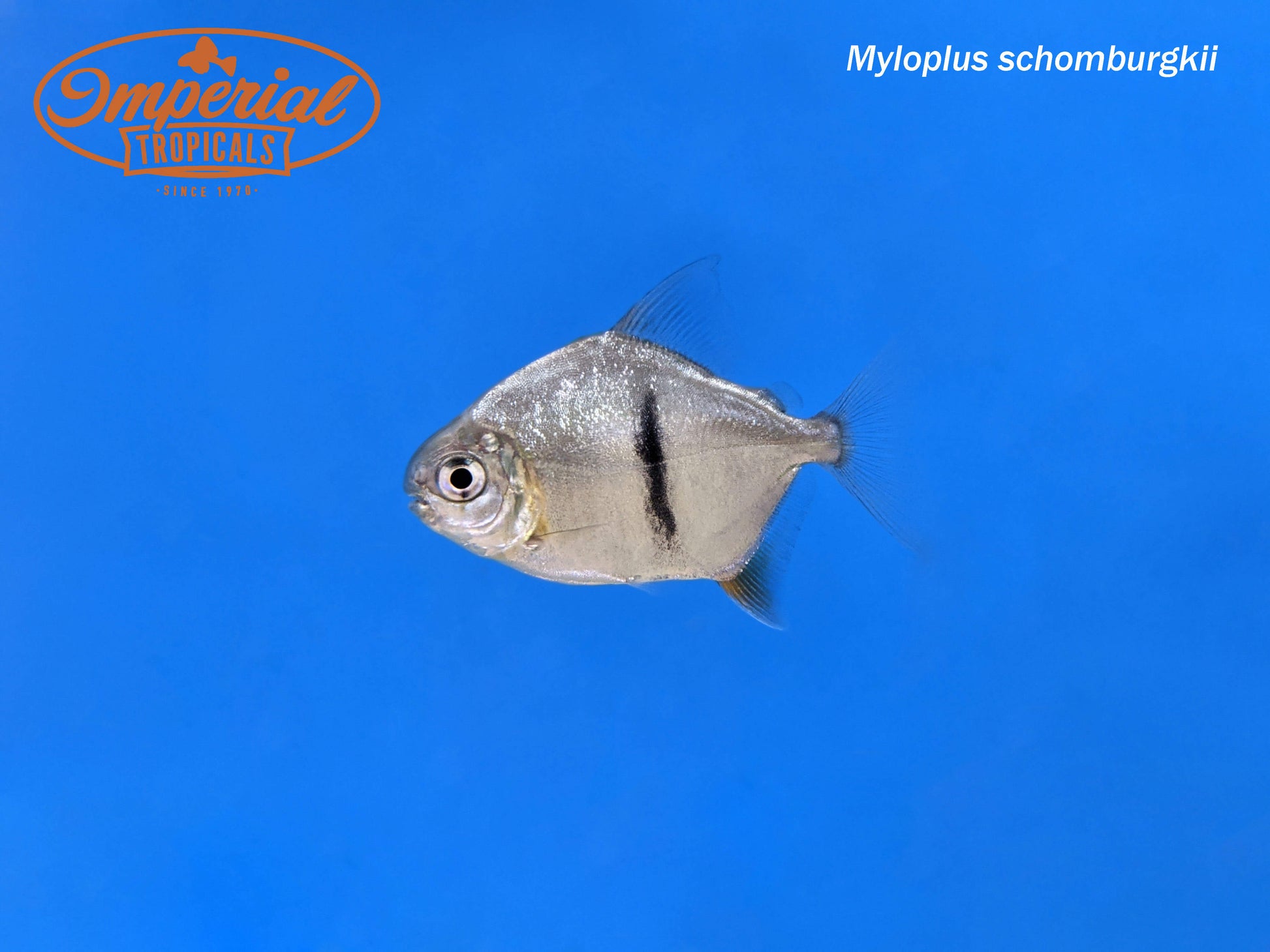 Remarks: Black Barred Silver Dollars tend to eat plants in aquaria, so plastic plants or hardy plants like Java Fern or Anubias should be used. These fish have light blue bodies with a thin black bar that connects the base of the dorsal tin to the start of the anal fin. They have orange anal fins and they may exhibit orange cheeks as well.