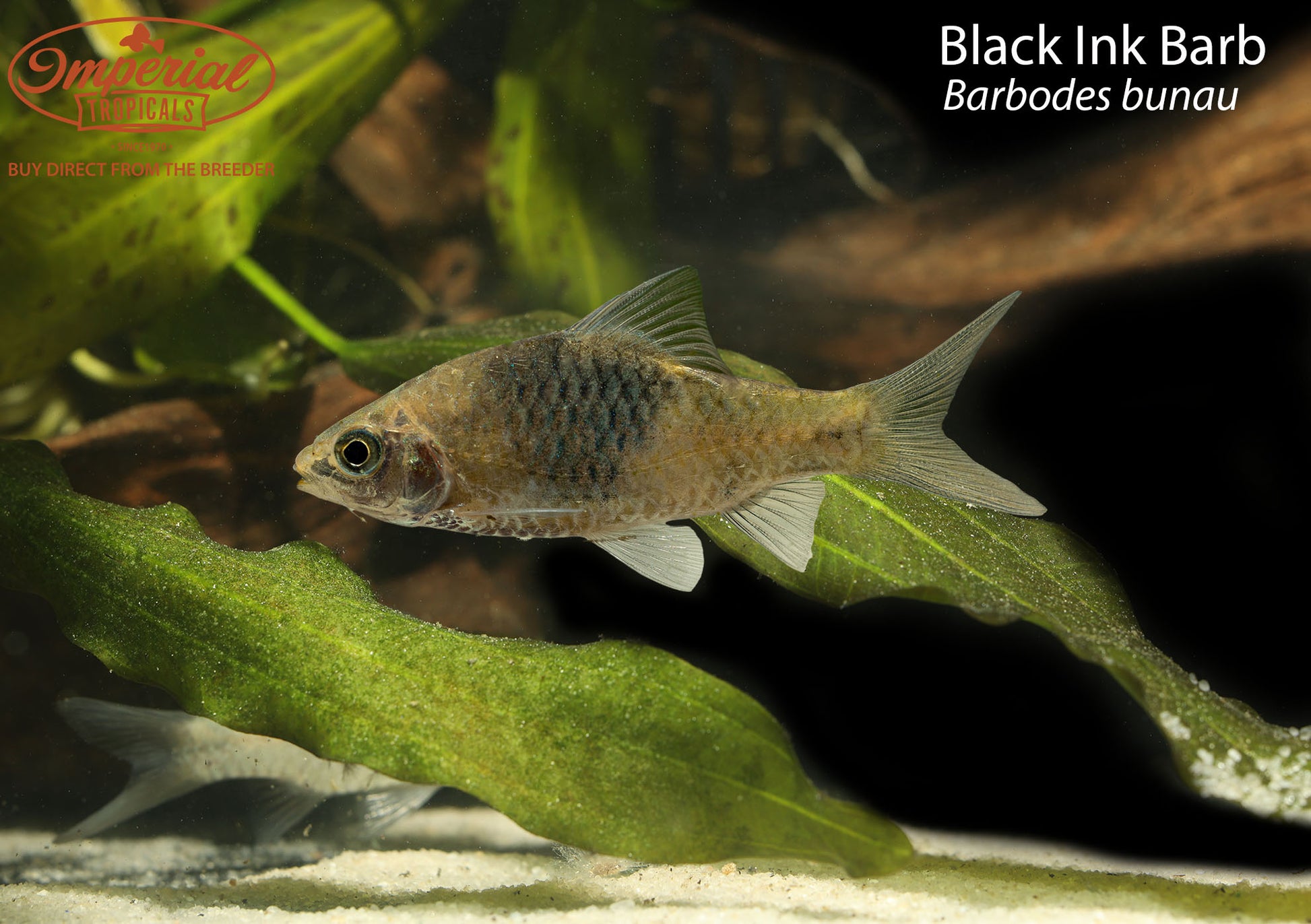 Remarks: The rare black ink barb is seldom seen in the hobby despite being a very fascinating species with beautiful and unique coloration. Mature fish will display silver heads, yellow or orange tails, and a large, dark gray or inky black patch just below the dorsal fin. This unique pattern and the endearing set of whiskers on either side of their mouths make the black ink barb a very attractive looking fish. Like with all barbs, there is little visual difference between males and females, but usually if they are ready to spawn, males will display brighter colors and females will appear more rounded.