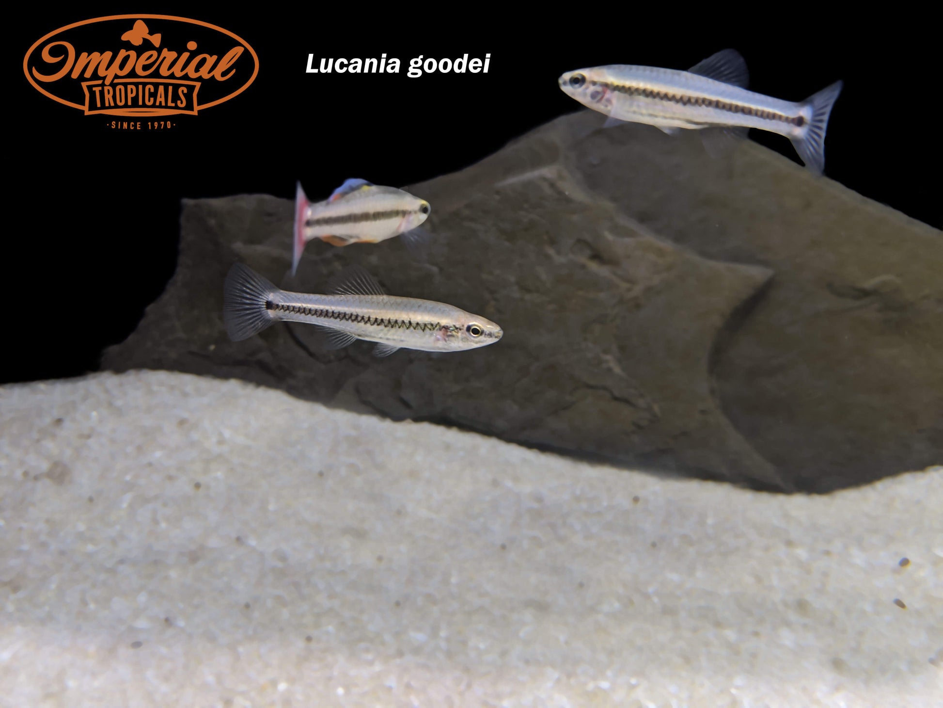 Remarks: The Blue Fin Killifish (Lucania goodei) is a native fish to Florida that we have been breeding in one of our vats. According to literature, they vary greatly in color and behavior. Most males will have a light blue dorsal fin, red caudal fin, and a lemon-colored body with a black lateral line. Females typically lack the color of males.