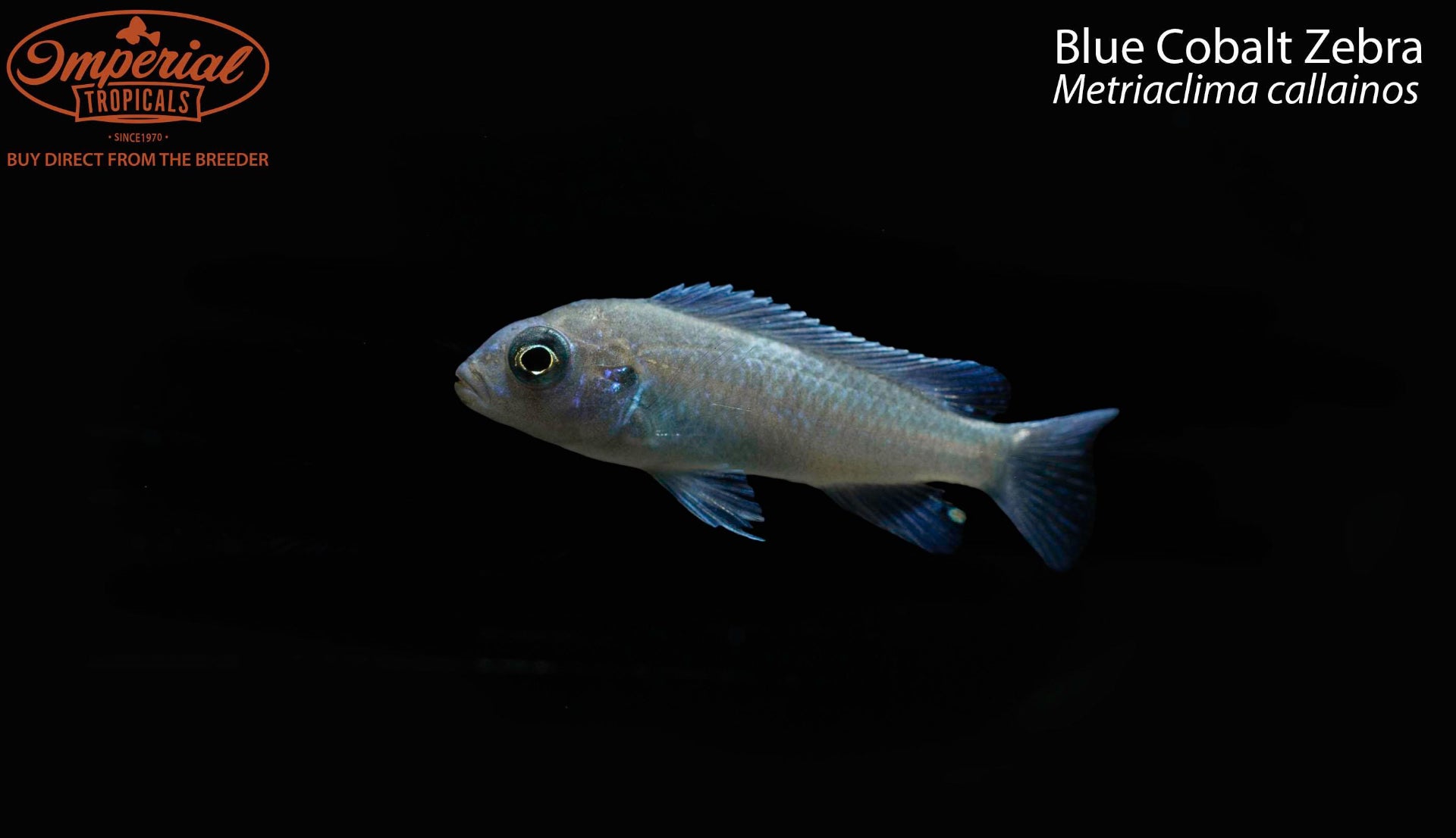 Remarks: Male Blue Cobalt Zebra (Metriaclima callainos) are light blue. Females are slightly more gray but retain much of the blue coloration.