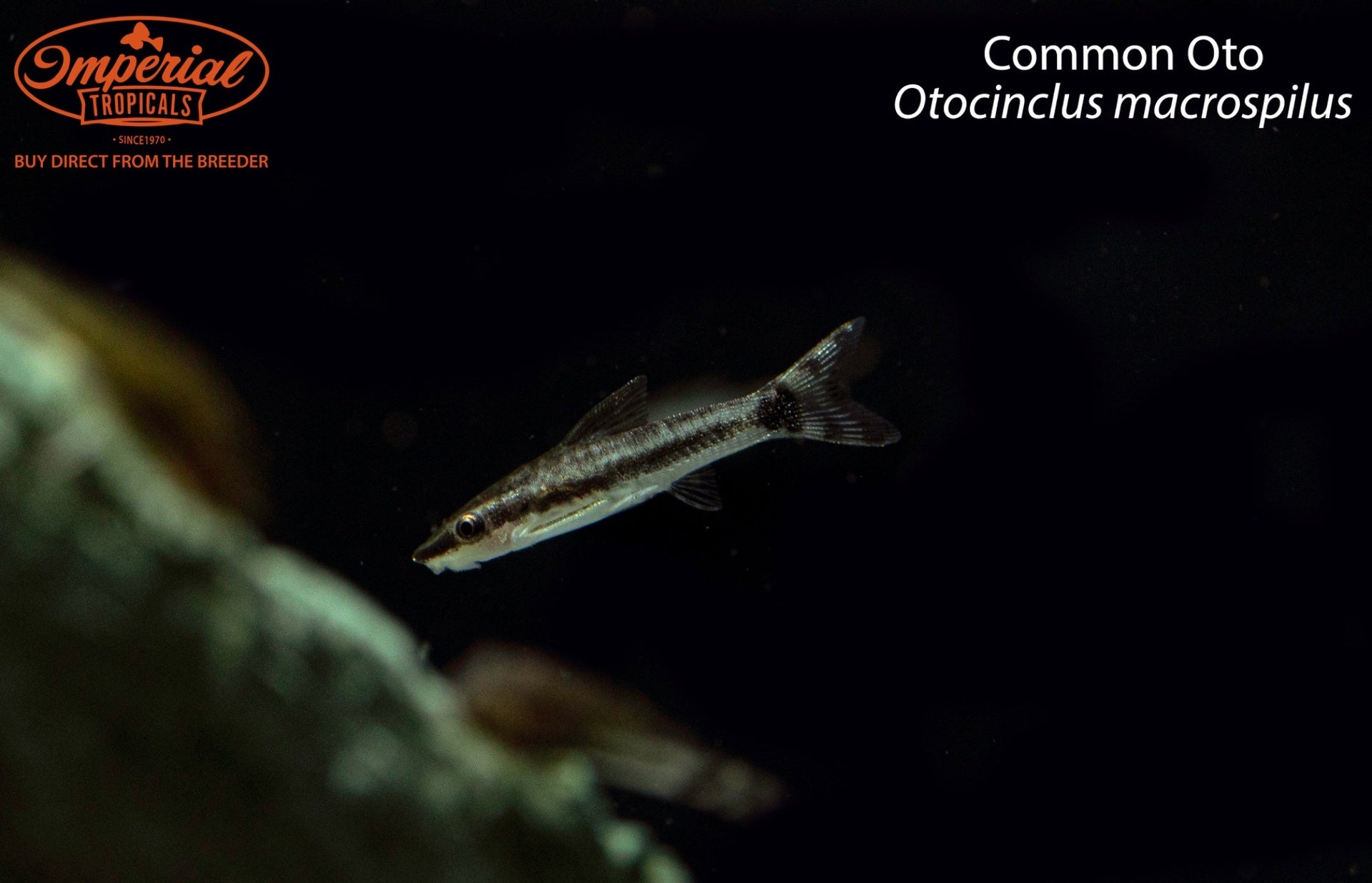 Remarks: Common otos are small, algae-eating fish from South America. They rarely exceed 1.5" in length and prefer to live in high numbers. It is recommended to keep them in a school larger than 10, but fewer numbers are okay in small tanks. They do a remarkable job cleaning leaves, wood, rocks, and glass of green and brown algae, and there are some reports of this species eating black beard algae as well.