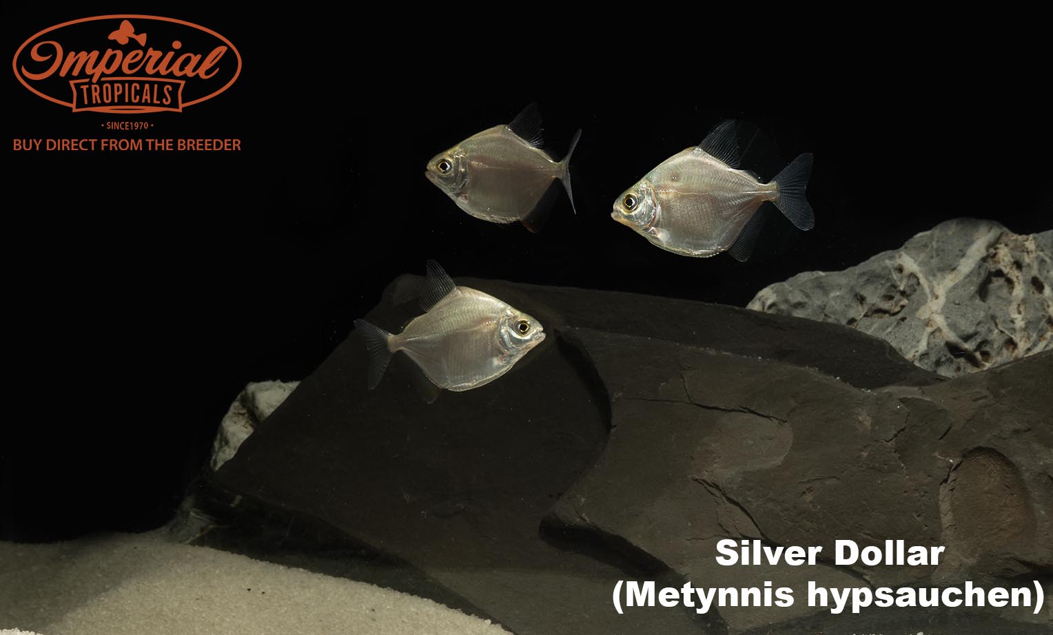 Remarks: Silver dollars have been in the hobby for a very long time mostly due in part to their large size and hardiness. They come from plant-choked tributaries throughout South America where they feed on fallen bark, fruit, and plant matter. Silver Dollars tend to eat plants in aquaria, so plastic plants or hardy plants like Java Fern or Anubias should be used. Even still, some have such an appetite for plants they may eat even these species or plastic plants.