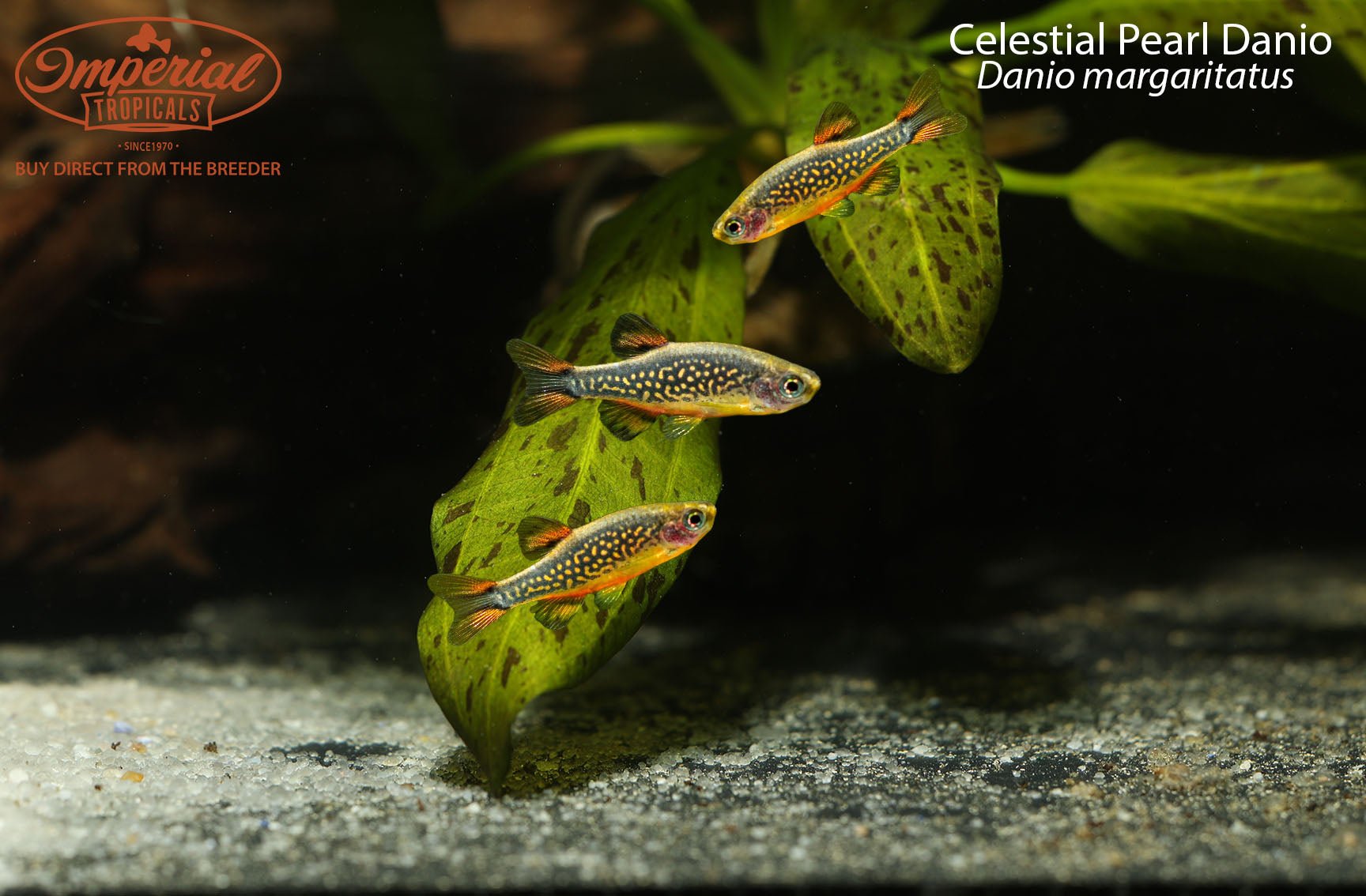 Remarks: Celestial Pearl Danios, also known as Galaxy Rasboras, are shy nano fish that prefer to hang out near the bottom of the tank, seeking refuge among plants and driftwood. A dimly lit tank with lots of decorations will help them feel safe and secure. Keep them with similarly sizes tetras, rasboras, barbs, livebearers, and small rainbowfish. They will reproduce frequently if kept with lots of moss for fry to hide in.