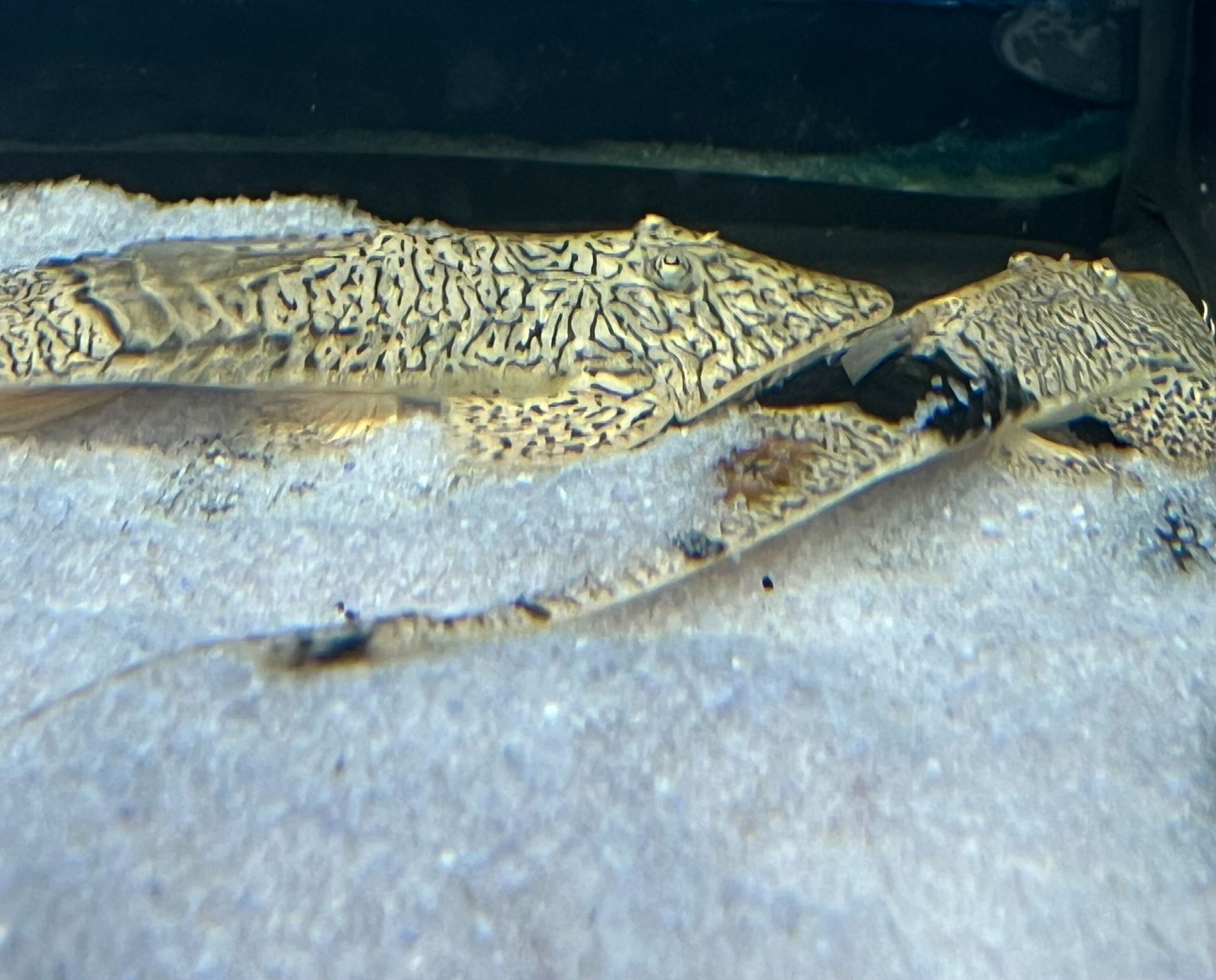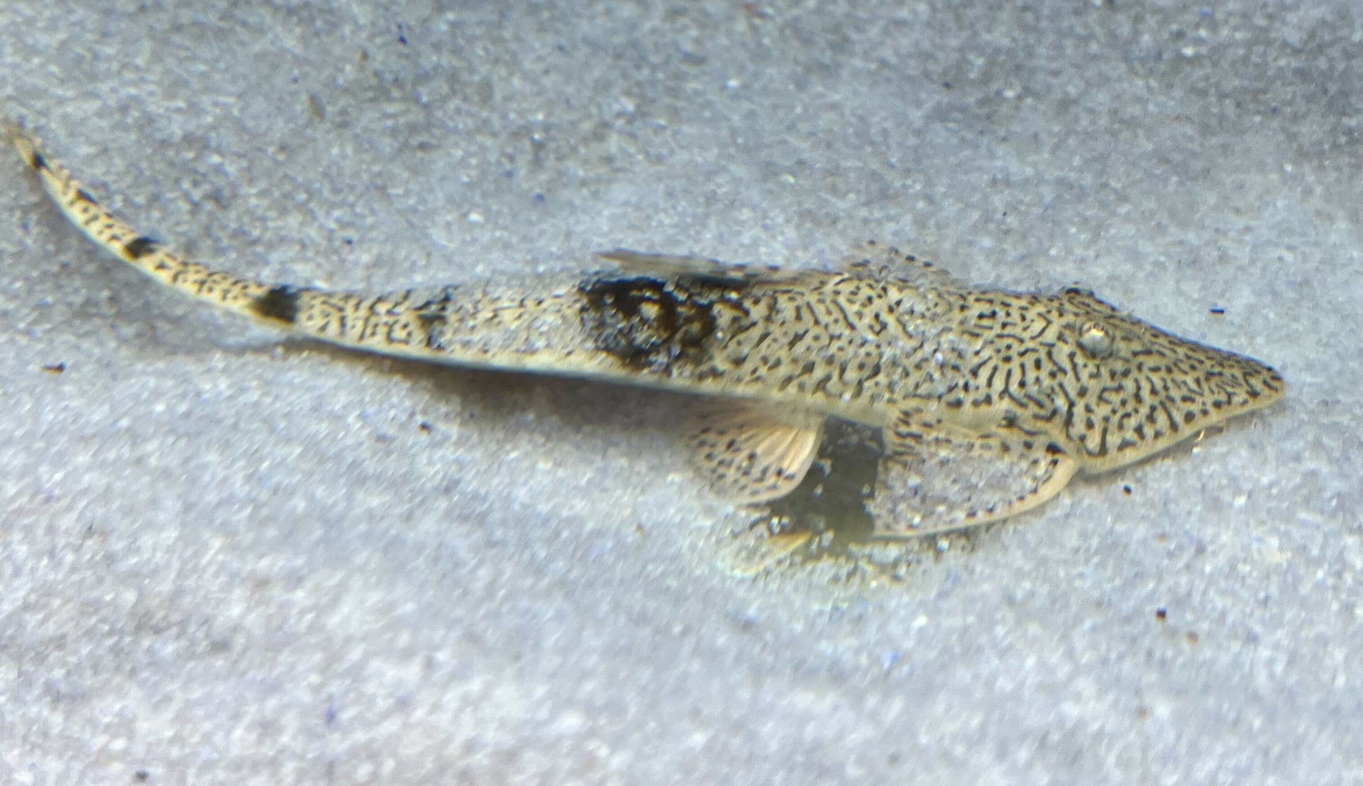 Remarks: The chameleon whiptail is perhaps the most sought after whiptail available today. Due to their unique ability to rapidly change colors when disturbed or placed over different substrate, they are the most striking of whiptail catfish. Long filaments extend from the tips of the caudal fin creating a very elegant look. They have many whiskers around the mouth, which are used to locate food in the sand. Males have larger whiskers which helps them also hold onto egg clusters. Due to their sand-sifting feeding style, this species should only be kept on a substrate of soft sand to avoid stress and injuries to their mouths.
