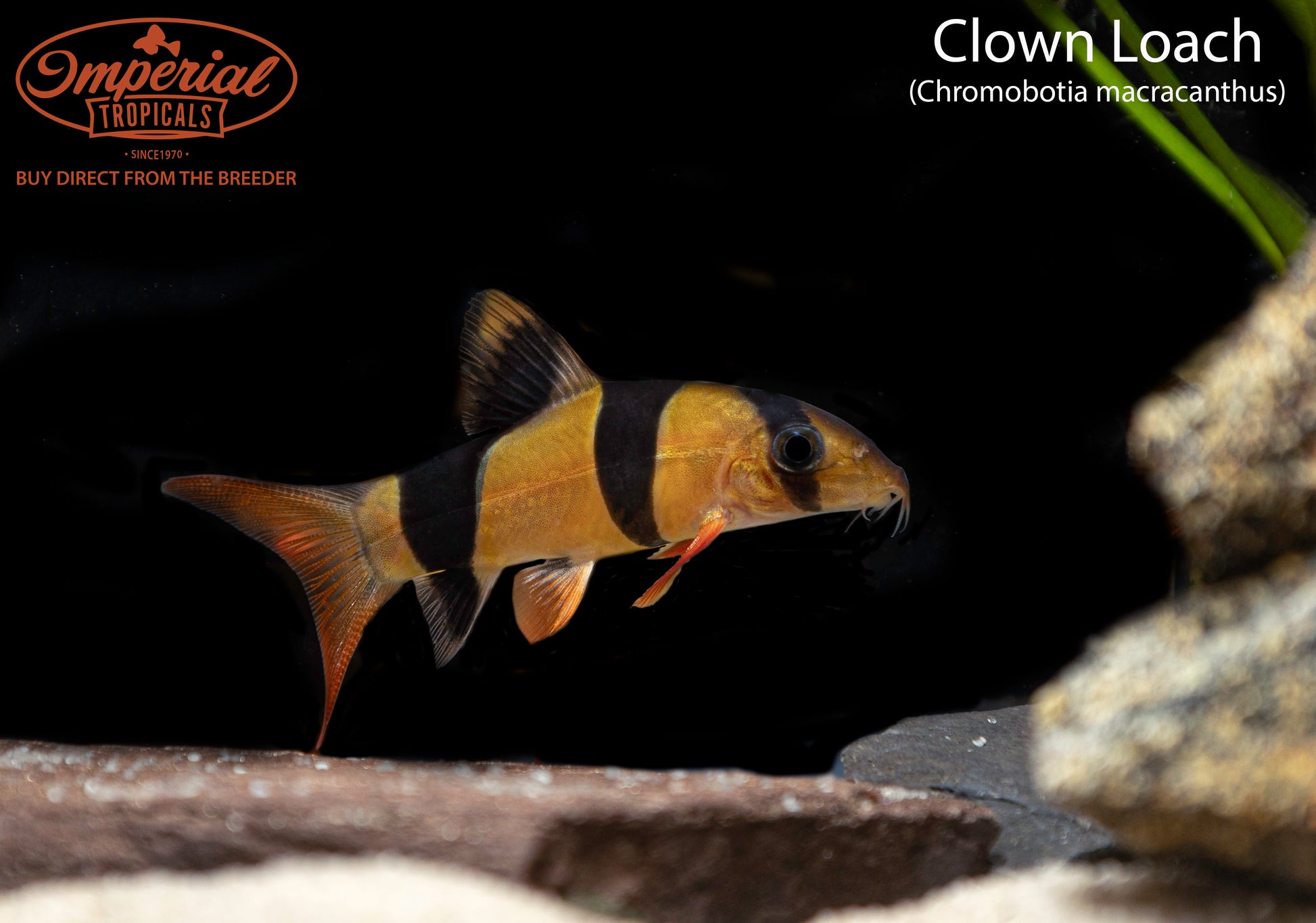 Remarks: Clown loaches have been a long-time popular staple of the aquarium hobby. It is not hard to see why with their striking orange and black bodies and their endearing personalities. Once settled into a tank, some of these behaviors might include "shadowing" other fish, sleeping in odd (and sometimes worrisome) positions, and feeding voraciously. Clown loaches are typically amicable with tankmates as long as they can't fit in their mouths and do not harass the loaches.
