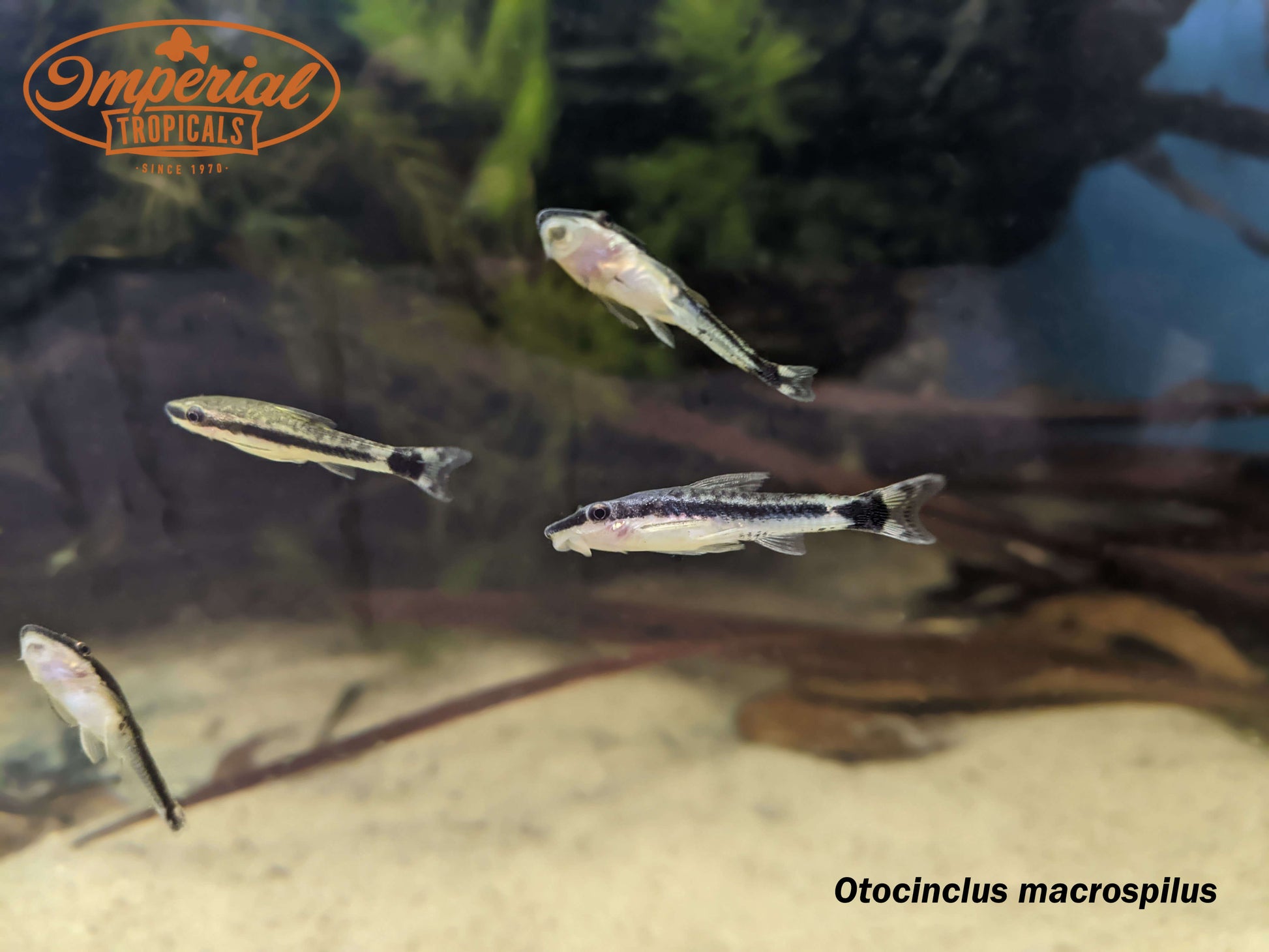 Remarks: Common otos are small, algae-eating fish from South America. They rarely exceed 1.5" in length and prefer to live in high numbers. It is recommended to keep them in a school larger than 10, but fewer numbers are okay in small tanks. They do a remarkable job cleaning leaves, wood, rocks, and glass of green and brown algae, and there are some reports of this species eating black beard algae as well.