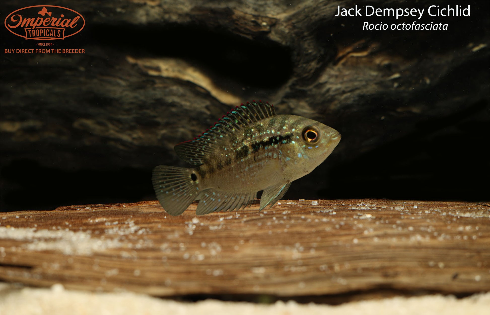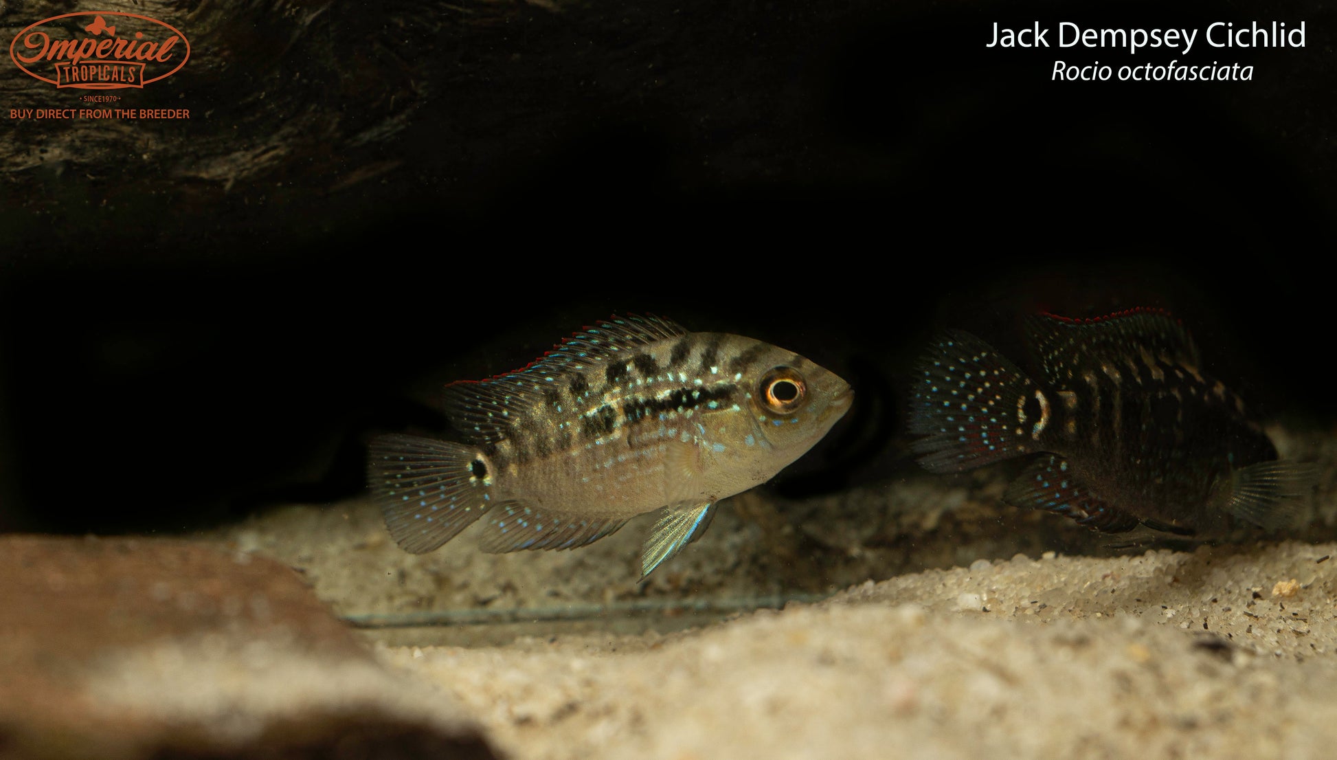 Jack Dempsey cichlids are highly territorial and are large predators so great care should be taken if one plans to house them with other fish. Anything small enough to fit in their expansive mouths is very likely to be eaten and any fish that is timid or looks similar is likely to be a target for bullying. When keeping them with other large cichlids, plenty of space should be provided with the tank being at least 150 gallons. However, pairs of Jack Dempseys can be kept in a smaller tank with 75 gallons being sufficient for a single pair as they tend to form strong, peaceful bonds. Pairs also tend to be excellent parents, carefully tending to eggs they lay on flat surfaces and even chewing up food into smaller pieces to feed their fry when they hatch. This makes Jack Dempseys a fun fish to breed or just to simply keep and appreciate their dazzling colors and interesting behaviors.