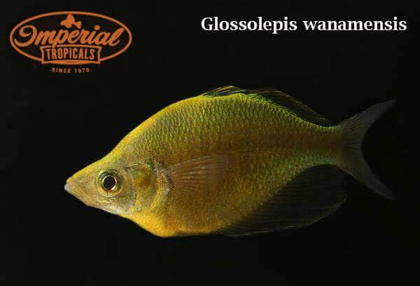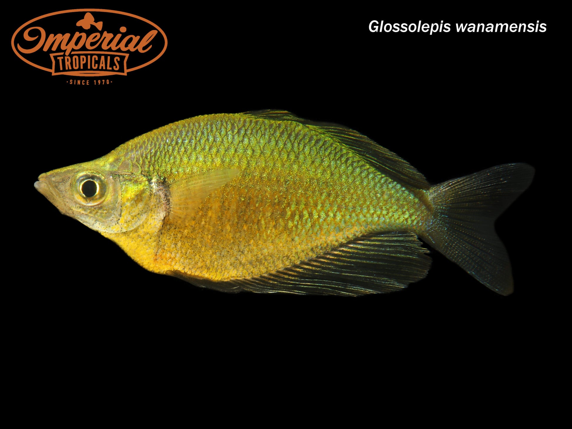 These fish are omnivorous and should be fed a quality flake food with supplemental proteins such as baby brine shrimp. They require clean water but tolerate a wide variety of water parameters. By providing frequent water changes, you will be rewarded with nearly continuous spawning attempts. Glossolepis species deposit eggs in weedy areas (often mimicked by a yarn mop) and the eggs hatch 7-10 days later. Eggs can be harvested for hatching in separate tanks to avoid predation. Most Rainbows show their best colors at sunrise, when the males display their bright fins for potential mates. Having more females than males will allow for proper color displays and avoid any unwanted aggression towards lone females.