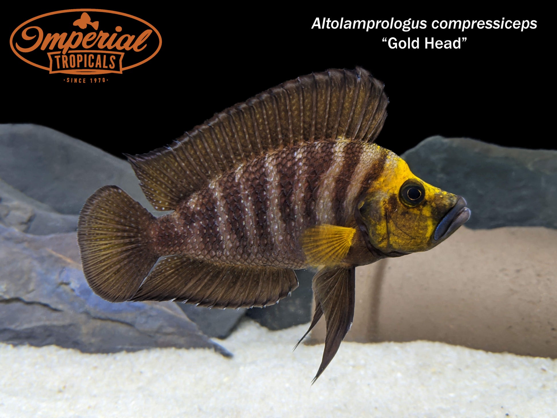 Remarks: Compressiceps are best maintained as a single pair, but can be maintained in groups if in large enough aquaria. It's not particularly territorial and can make a good addition to a community of Tanganyikan species, but shouldn’t be kept alongside anything small enough to be considered food. It is not recommended as a companion for Tropheus or any others species requiring a low protein diet. They grow very slowly with some taking years to reach maturity.