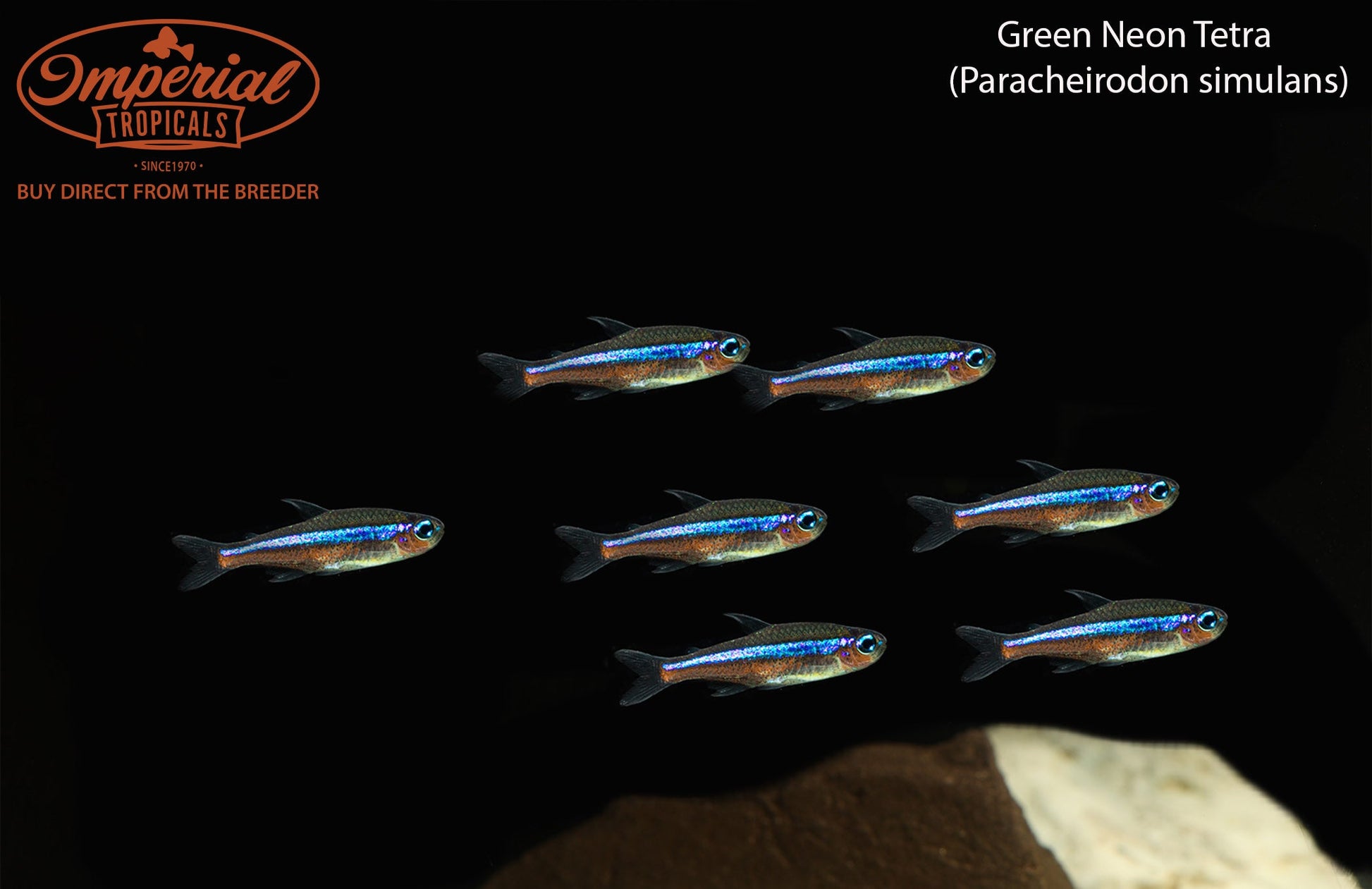 Remarks: Green Neon Tetras are one of the less common Paracheirodon species. They are a great choice for beginners and small tanks, as well as large schools in larger tanks. They have small, silver bodies with a pale red or clear abdomen and a green stripe from the caudal fin to the middle of their body. They should be kept in groups of at least 6 fish but a school of 10-15 will fit comfortably in a 10 gallon tank. An interesting thing to note about the green neon tetra is that they are the only Paracheirodon species to be found in the clear, main rivers in the Amazon instead of the tributaries or flooded forests where their cousins, the neon tetra and the cardinal tetra, are typically found. Because of this, they prefer their water to be slightly cooler.