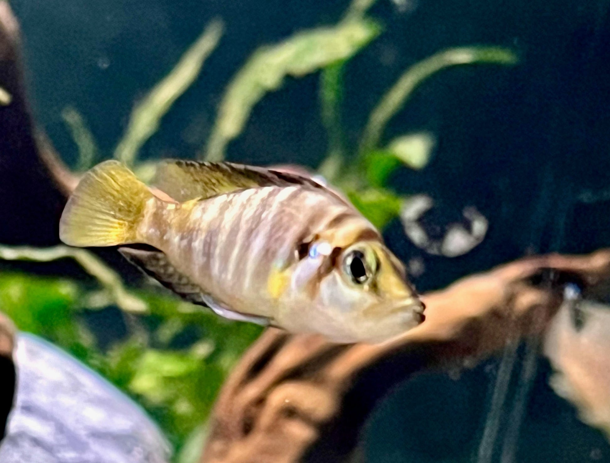 In the wild, compressiceps are ambush predators that wait in crevices between rocks until prey comes by. Once it does, their mouth juts out to nearly the size of the tallest part of their body in one fast motion, engulfing their prey. These crevices are also where these fish spawn with both parents guarding the eggs and fry.