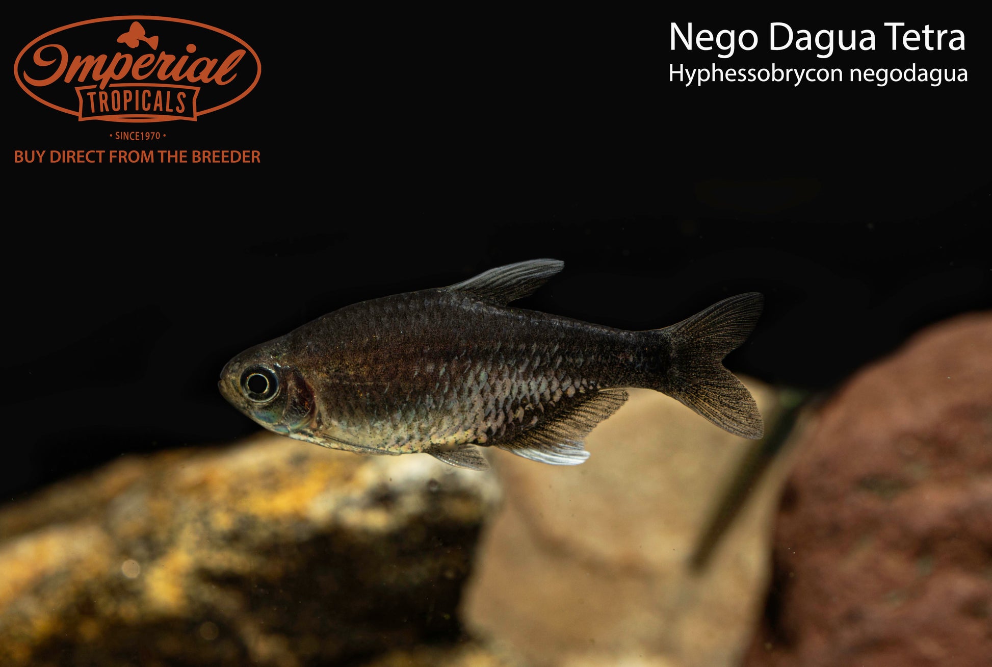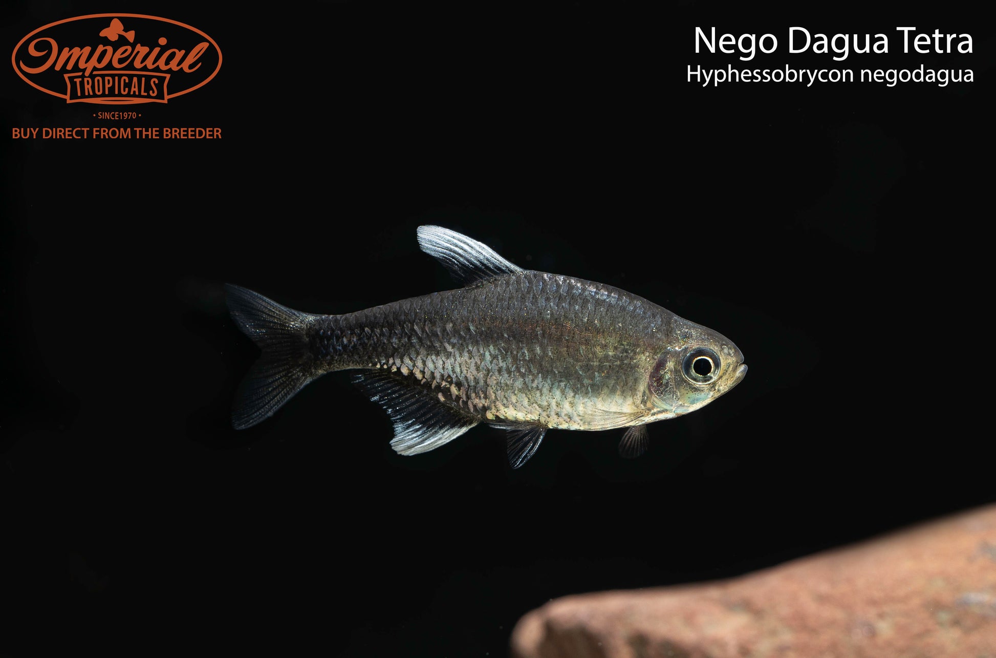 Remarks: Nego Dagua Tetras are small tetras from Brazil. They have silver/gray bodies with white tips on their dorsal and anal fins. They do well in community set-ups and planted tanks with both bright or subdued lighting. The Nego Dagua is fairly rare and a new tetra to the hobby.