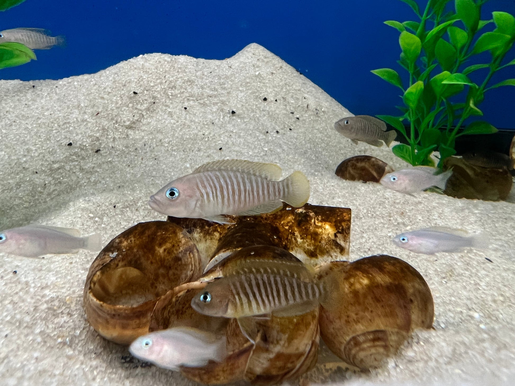 Remarks: These shell-dwellers will use round snail shells as breeding locations, sometimes burying the shell in sand to conceal it. They work well as a colony of breeders, with many pairs occupying shells within a small surface area. You will be rewarded with many fry, which are typically ignored by the parents.
