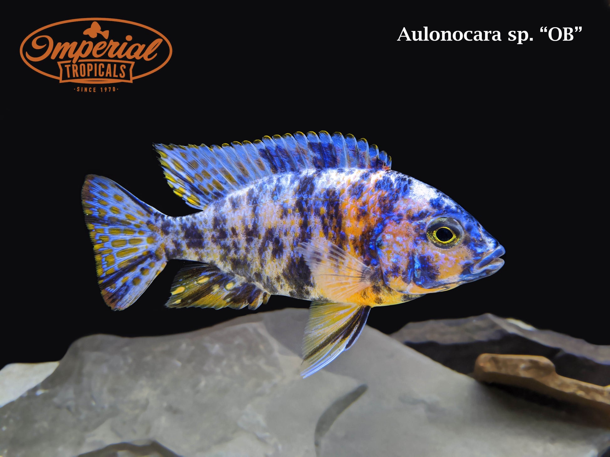Remarks: This hybrid was initially created by crossing a Peacock with an OB Mbuna. No two OB are the same! Colors and pattern can vary greatly from fish to fish.