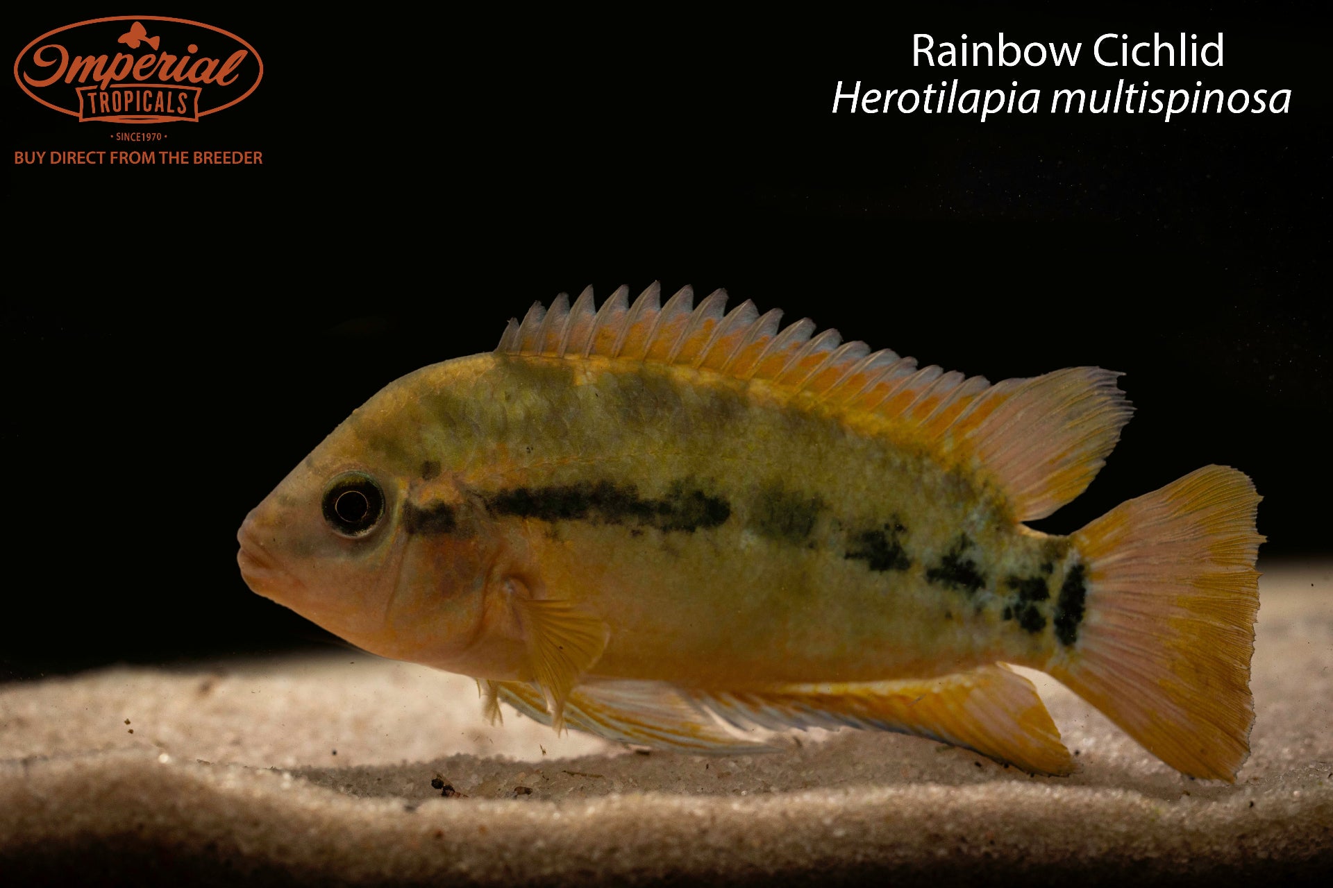 Remarks: Rainbow Cichlids (Herotilapia multispinosa) have been popular in the hobby for decades, and for good reason. They are fairly peaceful compared to many South American cichlids, they do not grow large enough to outgrow most tanks, and their color is certainly worthy of their name.