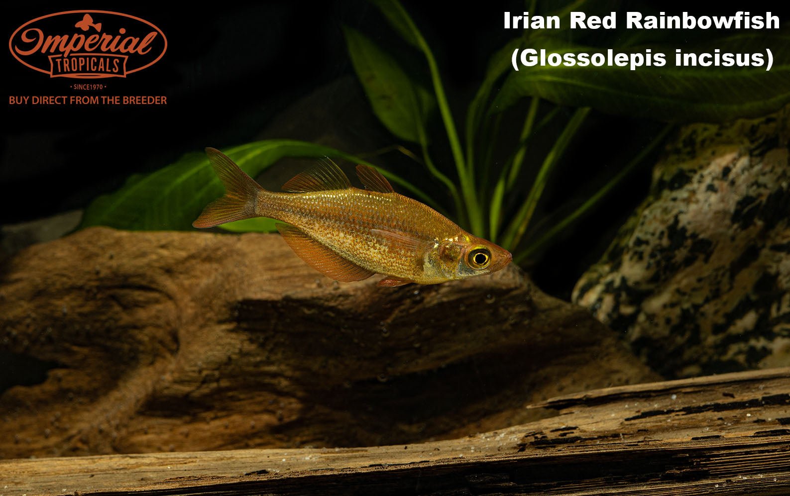 Remarks: Glossolepis incisus are known as the Irian Red Rainbow or the Salmon Red Rainbow. Females are a gold-bronze color, while males are mostly red with the occasional bronze sheen over scales. They are often collected near the shoreline in Lake Sentani, the only lake they are known to inhabit. They appreciate plenty of submerged vegetation.