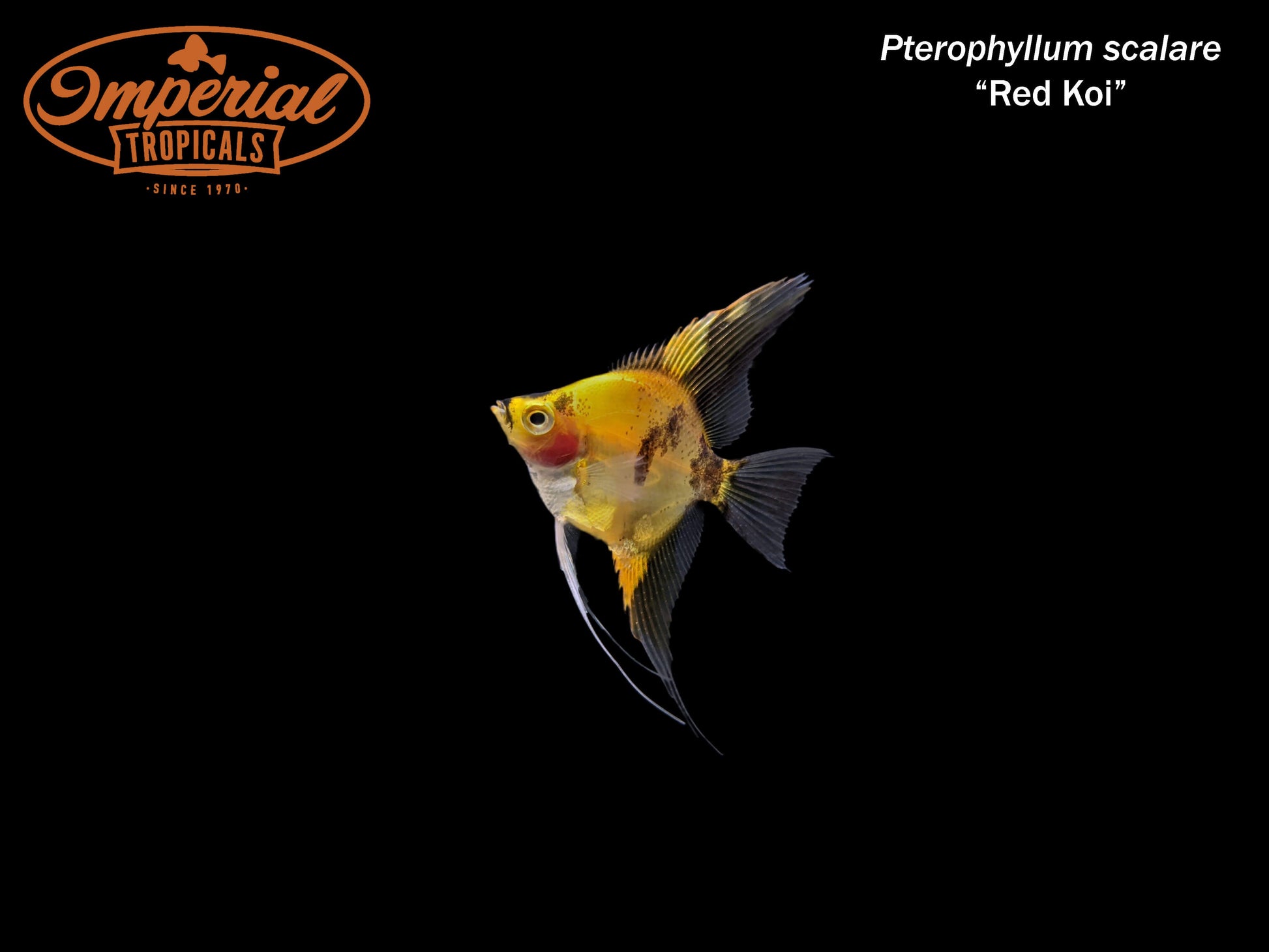 Koi Angels vary greatly in pattern, and there is no guarantee as to the amount of orange, black, or white in the fish. The Red Koi variant has a much brighter orange body and deep red gills that are visible through a clear operculum.