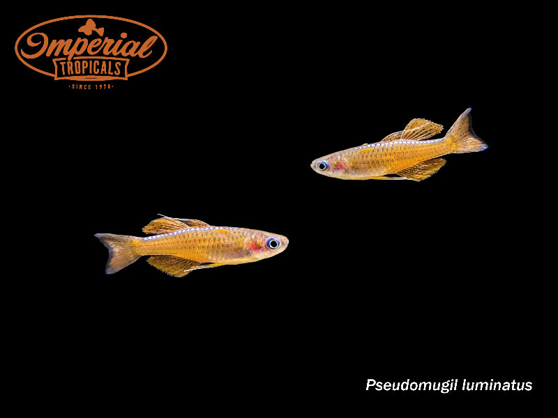 Remarks: Pseudomugil luminatus are a small species of Blue-Eye, a relative of the Rainbowfish. They are often confused with P. paskai, a species that is not common in the hobby. These bright red fish have very active personalities. Their pectoral fins are edged in a bright orange highlight, and their sporadic movements make them look as though they are fluttering about a tank. They will reproduce readily in a heavily planted aquarium without nippy fish. If breeding is not a goal, they can be kept with most community fish in tanks as little as 10-15 gallons.