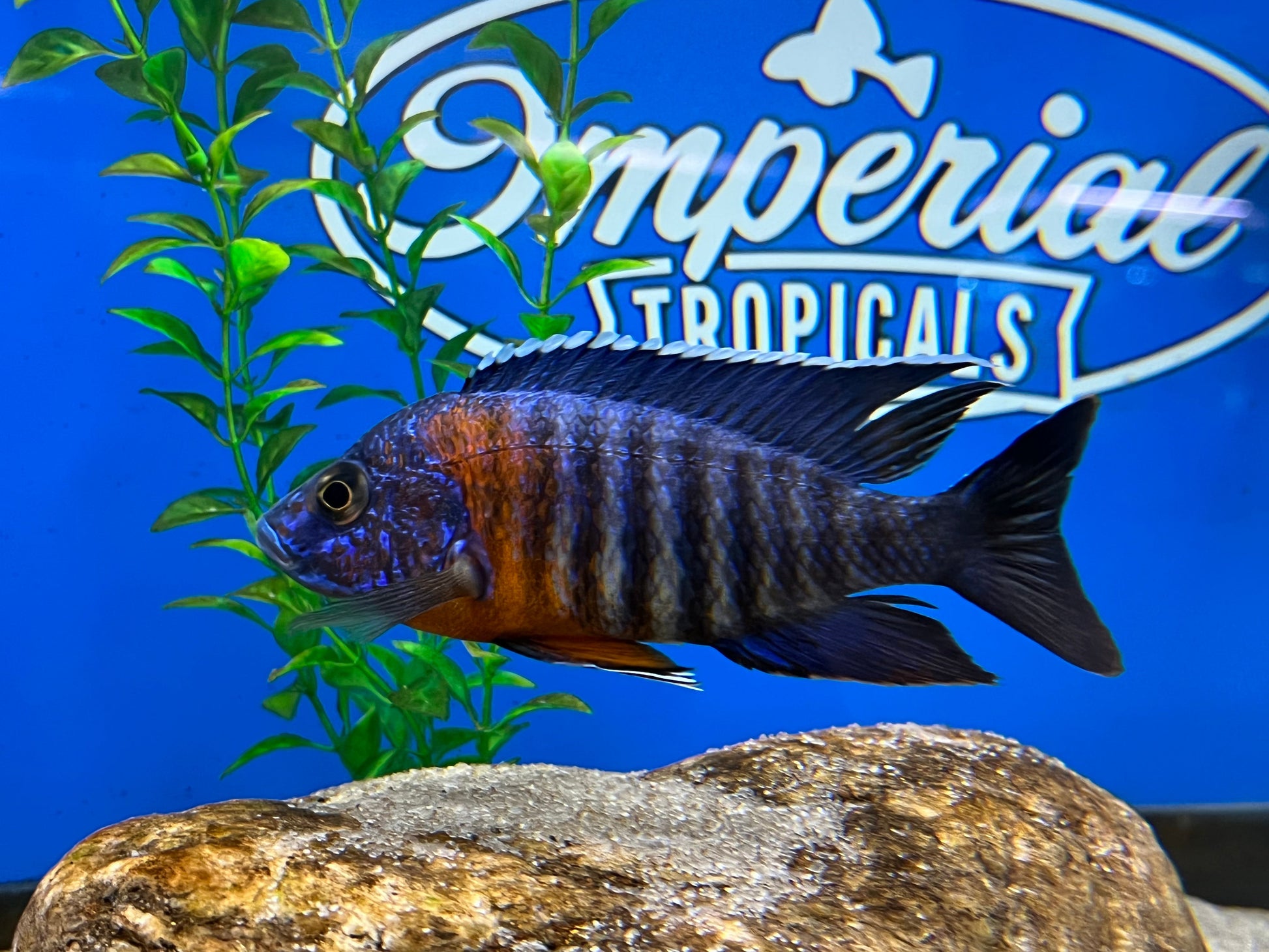Remarks: The red streak behind the gills gives this fish the name, "Red Shoulder." Males are solid blue with an orange-red patch behind the gill plate and extending into the pelvic fins. They are found near Chiloelo, Mozambique, on the eastern side of the lake.