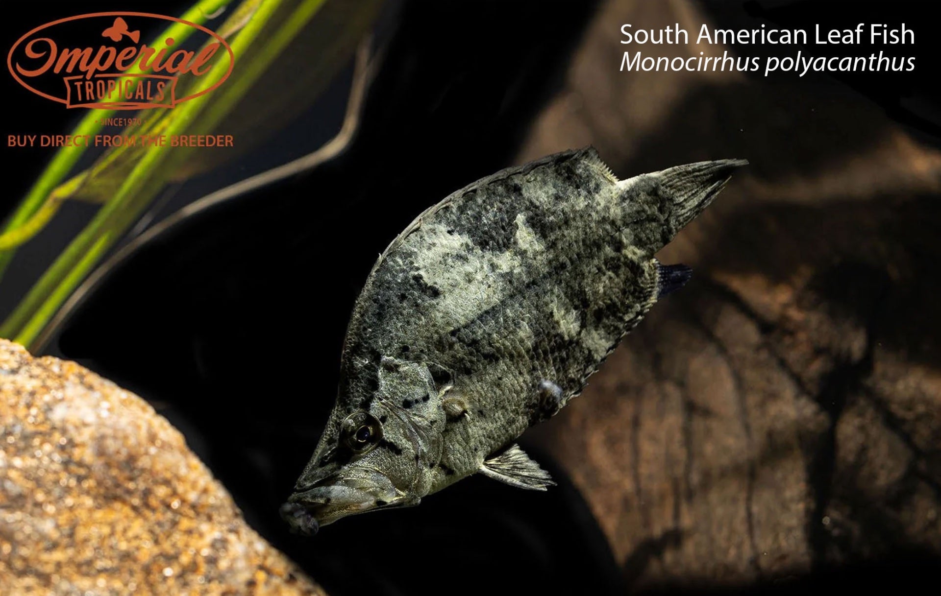 Remarks: South American leaf fish are slow-moving ambush predators. Naturally, they resemble a fallen leaf almost perfectly, giving them the perfect camouflage to hide from unsuspecting prey. Their colors change to better fit in with their environment causing their coloration to range from gray, to brown, to even orange at times. They are found throughout the Amazon in large groups, hunting under the cover of fallen branches.