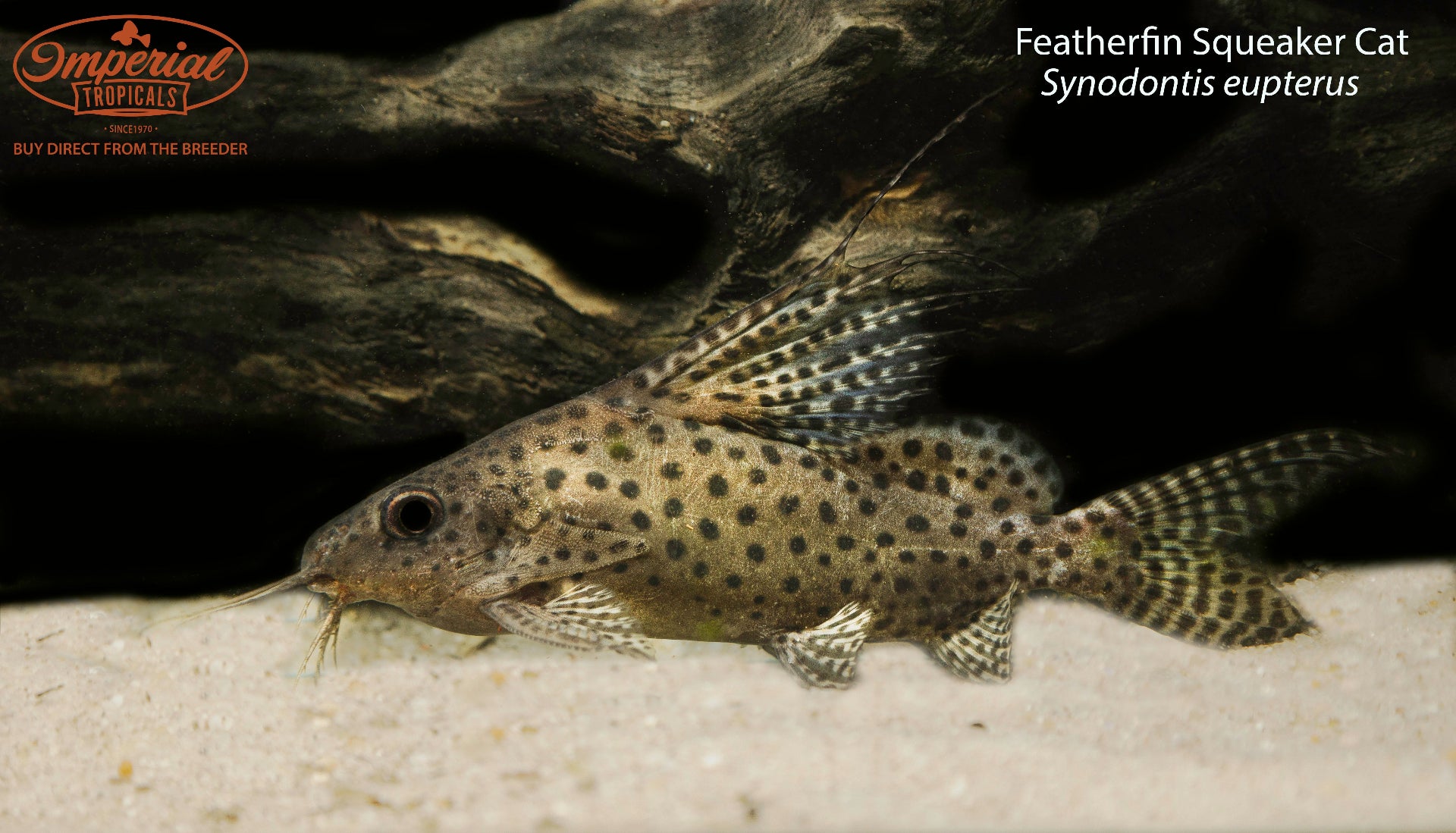 Remarks: The featherfin squeaker cat is one of the largest species of synodontis. Hailing from multiple different rivers in West Africa, they can be found in many different biotopes resulting in a very adaptable species. As they have been bred in captivity for many years, this has made them even more hardy and tolerant of a wide range of parameters.