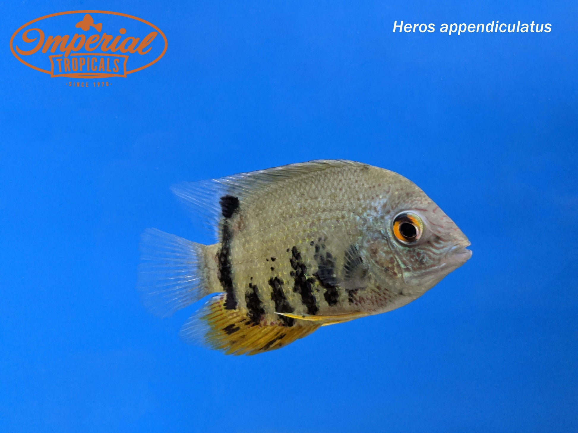 Remarks: Wild caught Turquoise Severums from Peru have been given the scientific name Heros appendiculatus, though some consider them a variant of Heros efasciatus, like the Green Severum. They have 9 stress bars, and males are covered in gorgeous small red spots.